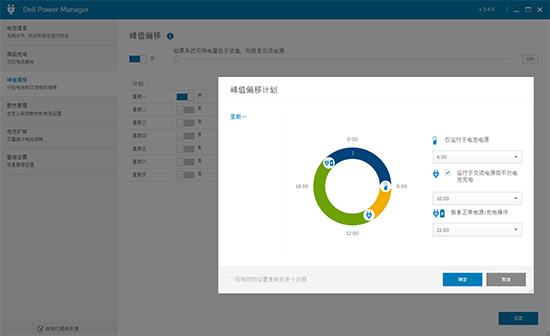 用电成本对企业来说是一笔不小的开支,不论是响应国家号召还是从企业自身利益出发,节能减排都是企业运维管理的重要一环。IT运营人员可通过Dell Power Manager “峰值偏移”选项针对不同岗位员工的办公需求,对员工电脑的充电设置进行批量管理,在电费较低的时段进行充电,通过在一天中的某些时段自动将系统切换到电池电源来降低功耗。