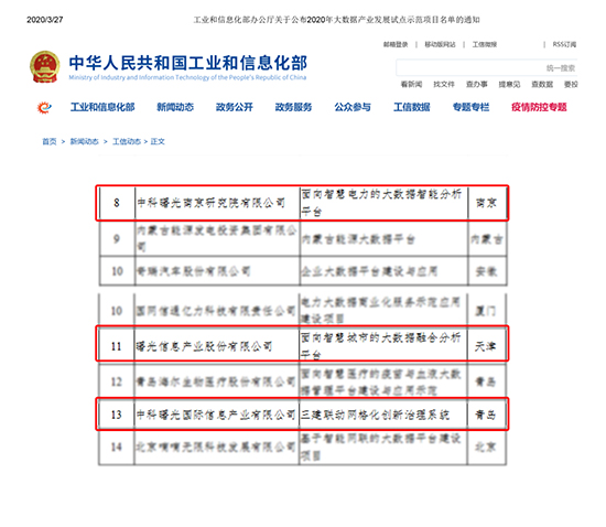 喜讯!工信部大数据示范项目公布,曙光三项目入选!