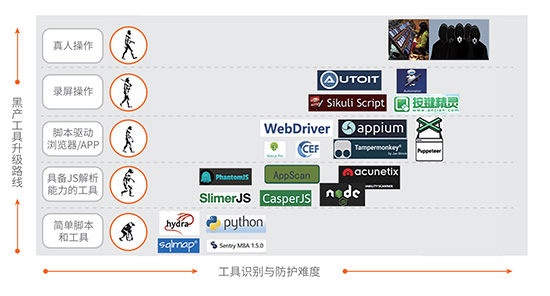 目前,Bots自动化攻击正在日益成为攻击者最青睐的攻击形式,免费、简单、高效,是攻击者越来越偏爱自动化的主要原因。黑客论坛或网站上发布的免费自动化脚本工具,以及破坏力极强但却不需要攻击者拥有深厚代码功底的自动化攻击工具都可以为攻击者所用,发起越来越复杂且成功率更高的自动化攻击。