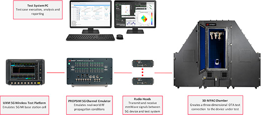 • 通过在 3D OTA 测试环境中使用多波束技术和多入射角(AoA)方法创建真实准确的条件,并对设计进行极限测试,使用户能够验证设备的真正性能。
