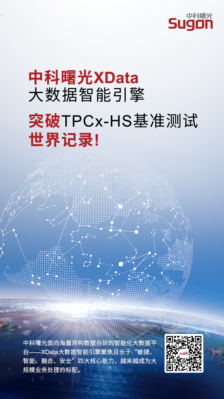 近日,中科曙光面向海量异构数据自研的智能化大数据平台——XData大数据智能引擎V6.0(简称“XData”)突破TPCx-HS基准测试世界记录。