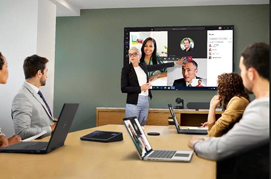 戴尔最新的针对Microsoft Teams Rooms的会议空间解决方案提供了一个完整的团队协作生态系统,包括可以在Windows上系统运行Microsoft Teams Rooms的OptiPlex 7080 Micro、戴尔大尺寸显示器以及音频和视频等周边产品。借助智能感应技术(可近距离感应用户到来)以及一键连接,员工可以准时开始会议,并即刻将会议内容投影到房间和线上参与者面前的屏幕上。