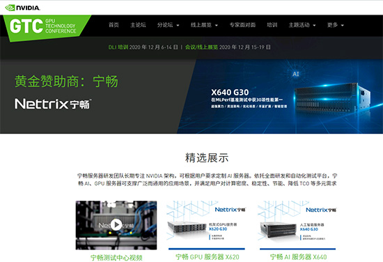 12月15日至19日,NVIDA GTC中国以线上形式举办。宁畅信息产业(北京)有限公司(以下简称“宁畅”)受邀,以黄金赞助商身份首次携X640 G30等多款AI服务器产品亮相GTC。