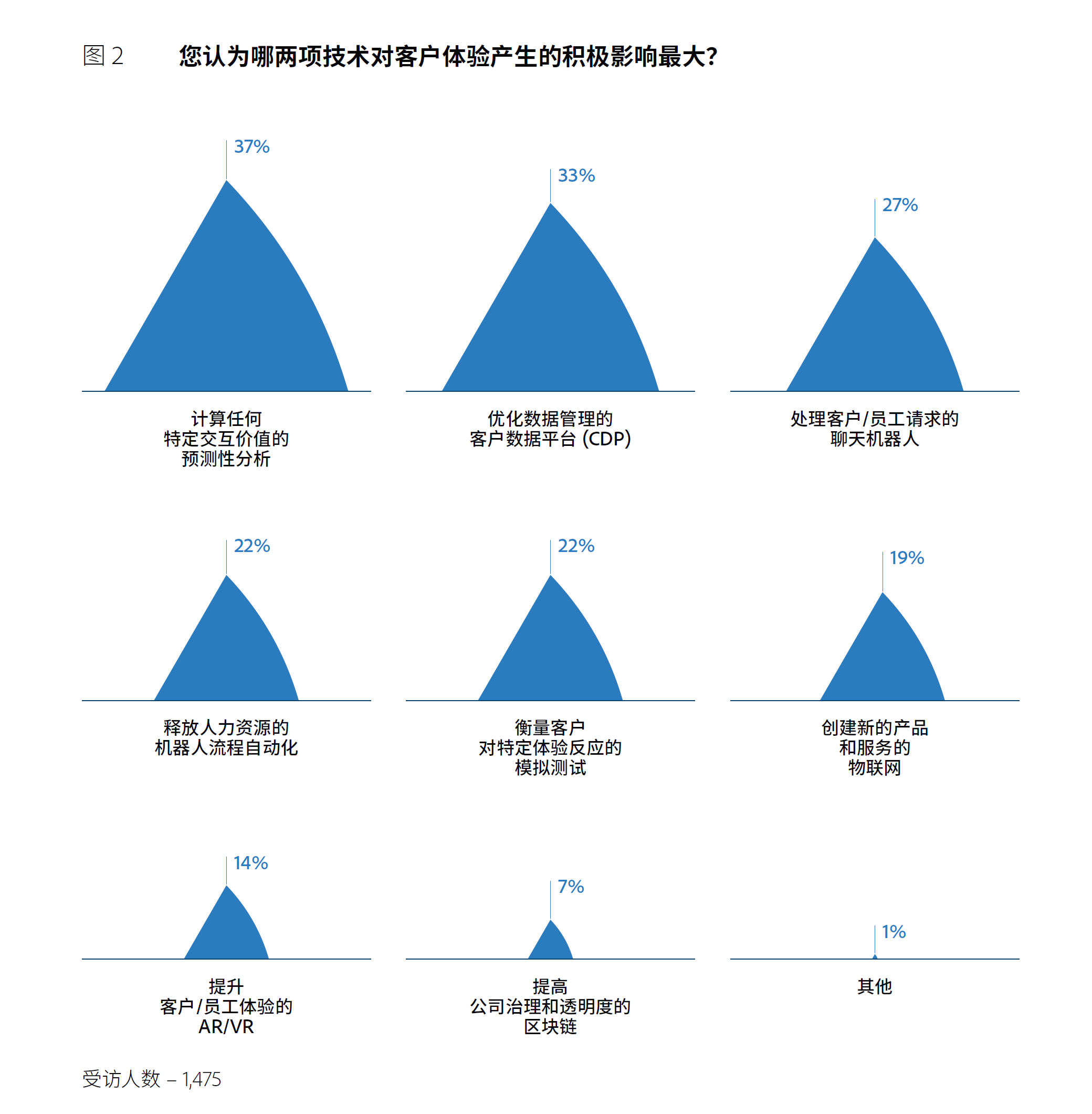除聊天机器人外,预测性分析、客户数据平台、客户体验模拟测试、流程自动化、物联网、AR/VR以及区块链等技术也是当前企业正在考虑的数字化技术方向。在数字化转型方面,企业的IT部门应当勇于创新和试验,在不断探索中实现企业的数字化战略与技术的完美结合,达到理想的用户体验效果。