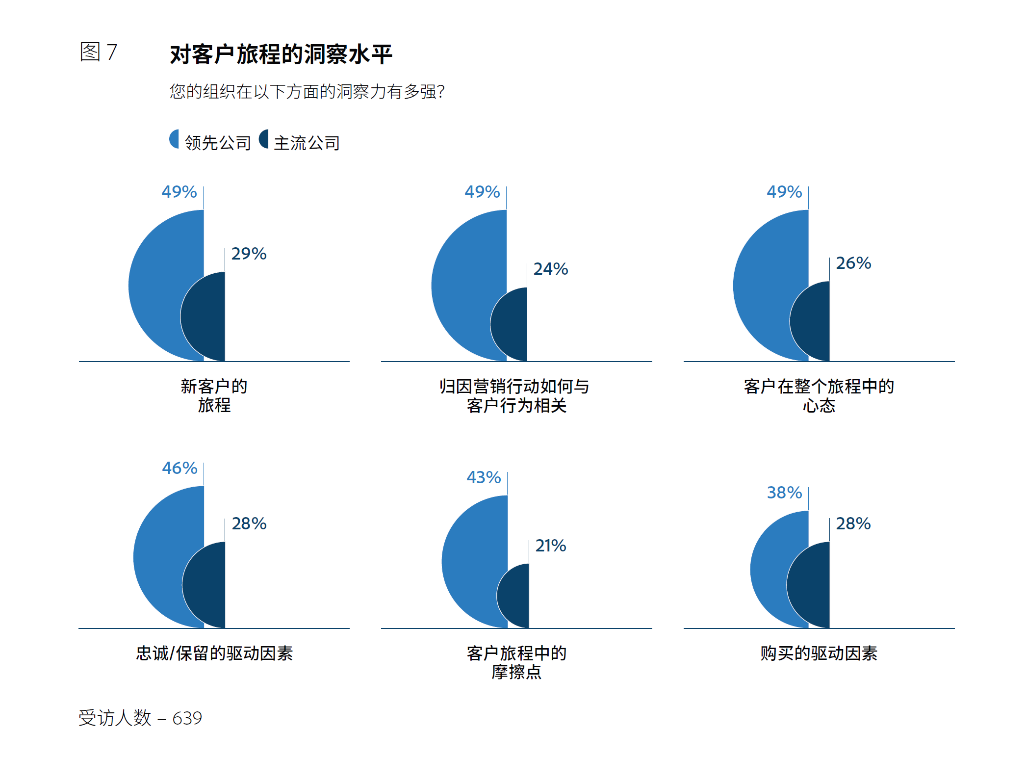 调研表明,越是领先的绩优的企业就越具备较高的数字化素质,越能更好地理解客户旅程。他们在新客户旅程、客户行为归因、客户心态、客户忠诚度、旅程摩擦点、购买驱动因素等方面的理解都普遍优于一般的公司。这些绩优企业在客户洞察的速度、准确性和可操作性等方面也都普遍好于普通公司。