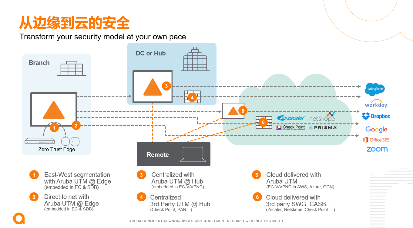 为了充分发挥云方案和数字化转型的潜力,企业和组织需要一个新的 WAN 边缘,以融合本地和云交付的安全性,进而实现 SASE 的预期效果,为连接到 SaaS 和公有云平台的用户提供安全保障,并保护那些需要基于零信任身份安全的 IoT 设备。通过今天发布的Aruba ESP 集成,企业客户现在能够从边缘到云应用基于身份的细颗粒度安全策略,以便安全地连接并保护用户和设备。
