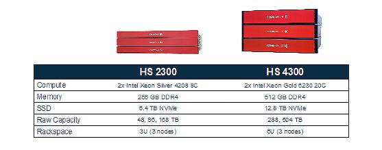 Commvault HyperScale™ X有两种尺寸——HS 2300有三台1U机架服务器,原始容量最低为48TB;HS 4300有三台2U机架服务器(共6U),最高可扩展到504TB的原始容量。HS 4300能够驱动更好的性能和扩展,允许客户实现额外的用例,比如将工作负载迁移到云端、为DR和dev-ops用例执行虚拟机实时恢复以及为敏感数据治理运行分析工作负载并执行文件的存储优化。