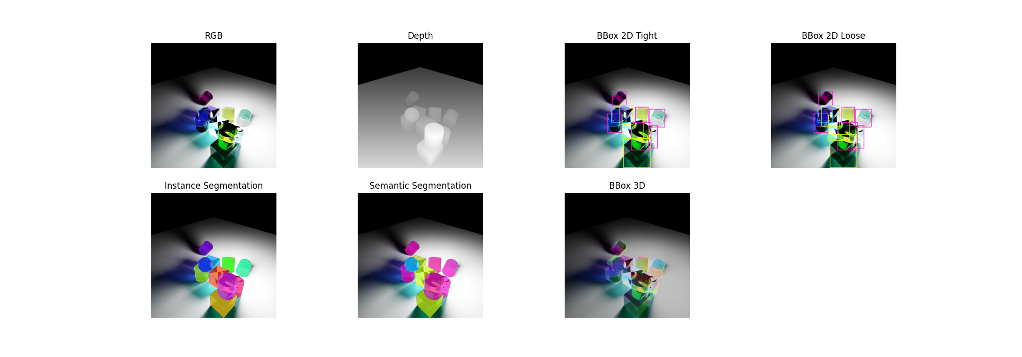 Isaac Sim 内置了对训练感知模型很重要的各种传感器类型的支持。这些传感器包括 RGB、深度、边界框和分割。