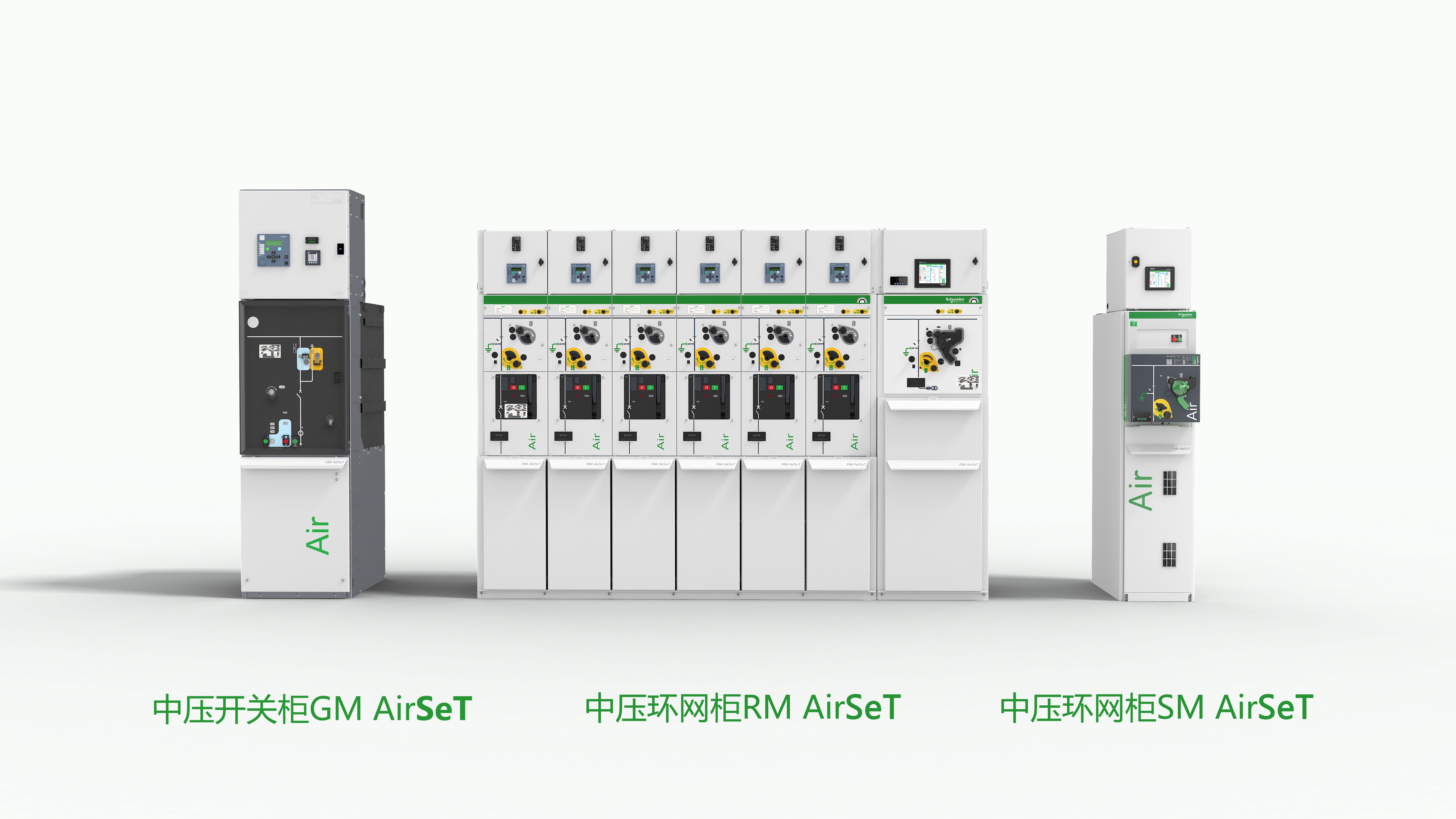 在这方面,施耐德电气经过数十年的潜心研究,极具前瞻性地推出全新一代SF6-free中压开关设备:GM AirSeT、RM AirSeT与SM AirSeT。该系列产品使用干燥空气替代强效温室气体六氟化硫作为绝缘气体,结合并联真空开断技术,更加安全、可持续地利用数字化技术,解决数据价值,并有效控制碳排放,提高成本效益。