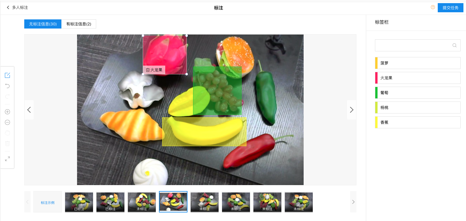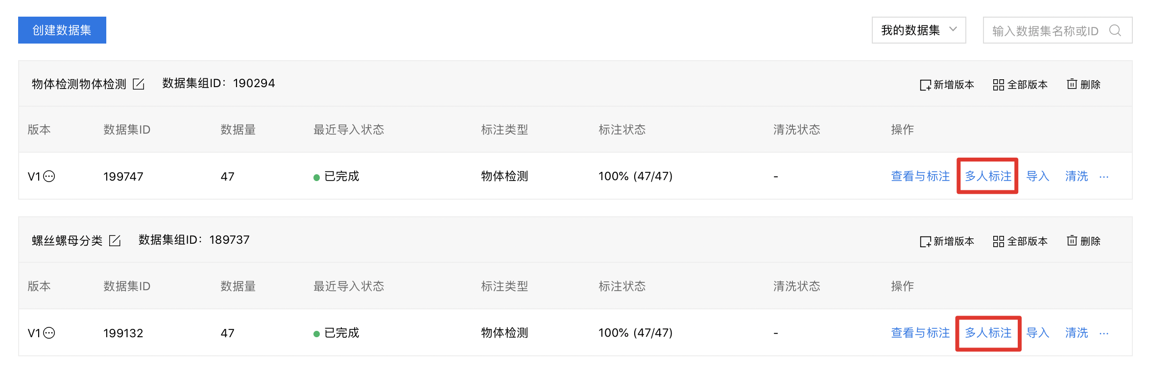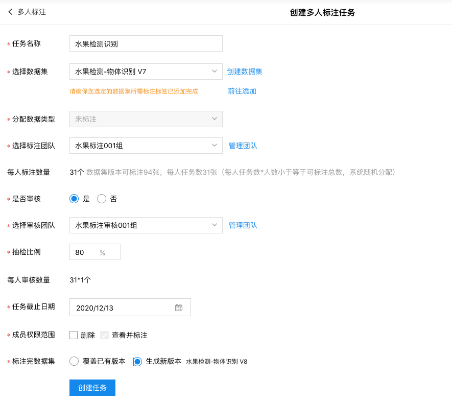 团队创建好后,就可以对已有数据集的未标注图片发起多人标注任务了。如下图: