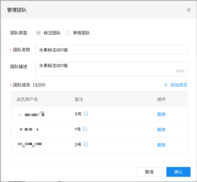 首先,管理员创建好标注团队和审核团队,并在团队里添加相关的成员并完善信息。