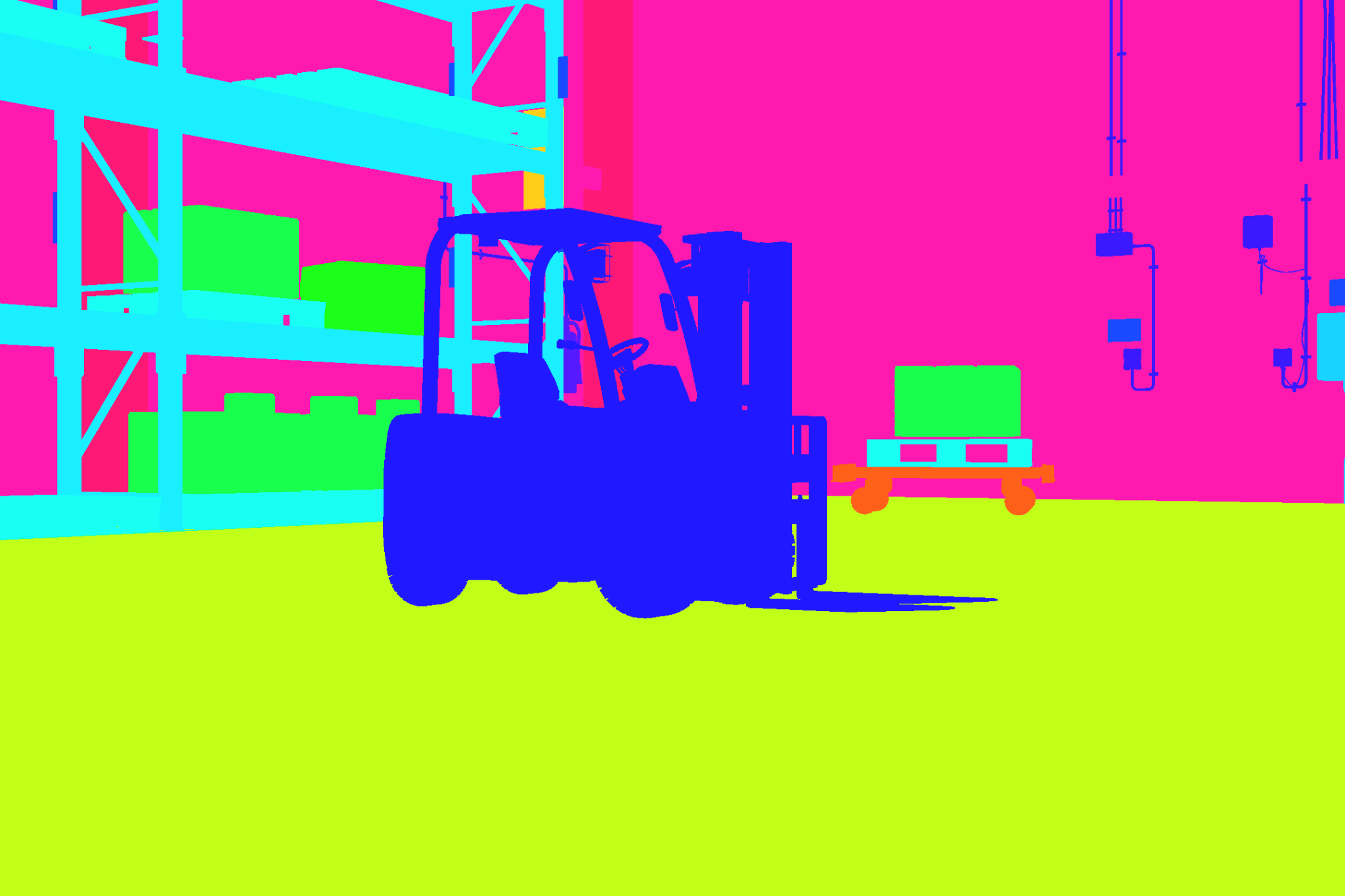 我们从NVIDIA TAO工具套件中选择了一个预训练模型来执行识别叉车所需的分割任务。该模型经过预训练,可以对人、车和背景类进行语义分割。当该模型被调整为使用Isaac Sim Data Replicator中生成的合成数据对叉车进行语义分割时,我们使用了迁移学习。