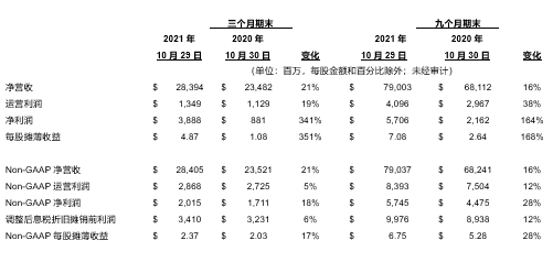 · 第三财季营收创新高,达284亿美元,同比增长21%