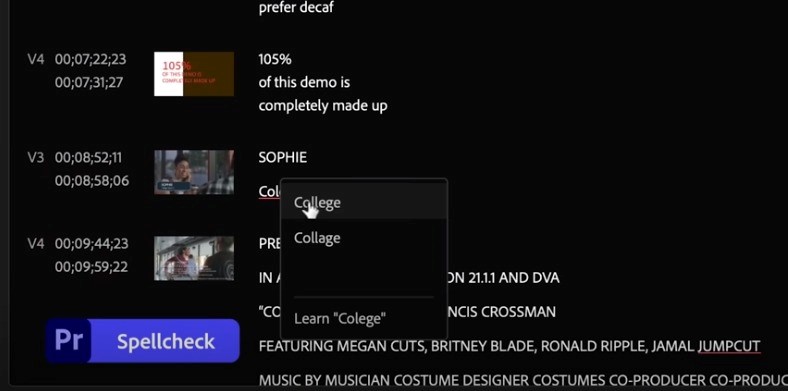 Premiere Pro新增字幕和图像内搜寻和拼写检查功能