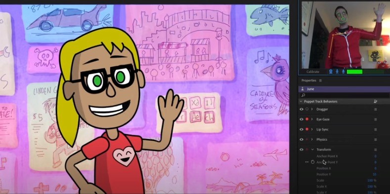 此外,创作者可以利用会议摄影机或任意连接计算机的摄影机,通过声音、面部表情和肢体动作为角色添加动画效果,大幅提升录制及优化动画的互动性及工作流程。他们还可利用木偶制作创新工具集将创作的动画融入到社交媒体文章或在企业演讲的视频中。