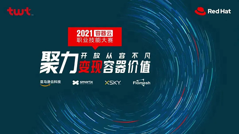 容器云职业技能大赛由上百位行业领先企业IT管理精英共同倡导发起,中国企业IT社区twt与国际开源领袖红帽联合主办,同时由亚马逊云科技、SmartX、XSKY星辰天合、Flomesh作为共创厂商,并于2020年举办首届。