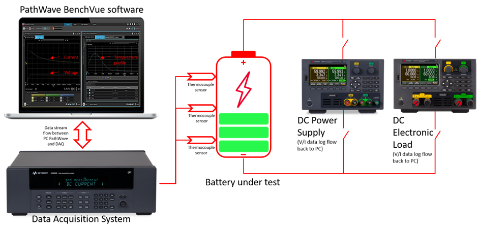 数据采集(DAQ)系统是测量单个对象或多个对象的温度时最常用的一种仪器。 DAQ 系统可以监控产品电池系统中多个点的温度。 通常情况下,您会首先对设计模块进行功能测试, 进一步, 集成的数个功能模块, 进行开发阶段的测试。 对电池包和系统进行的实验性测试, 通常是在早期产品设计阶段, 使用几种常见的研发实验室用仪器完成。