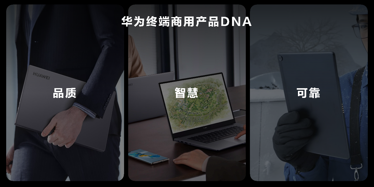 全面进军商用领域,华为带着全新的理念和愿景而来。华为认为,商用设备市场在经历了以商用台式机为中心的1.0时代和多设备融合的2.0时代之后,当下正在步入云和AI的3.0时代,商用办公电子设备正向着高性能、智慧化、全联接和新形态演进,全场景融合、智慧交互是其主要特征。在这样一个商用办公迈向全场景智慧体验的转折点,华为终端将商用业务的理解和消费领域的成功经验相结合,凭借品质、智慧、可靠三大DNA,为商业客户提供更好的设计工艺、更智慧的使用体验、更可靠的产品质量和值得信赖的服务。