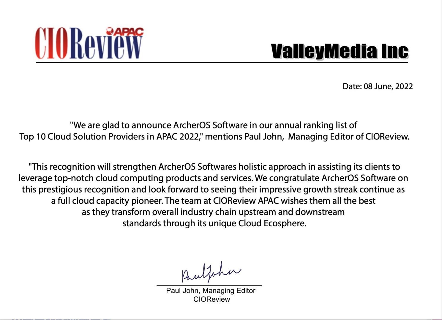 在2022年度云特刊中,CIOReview关注云计算领域的先驱者,并基于他们为企业用户提供的卓越的云服务评选得出亚太区“十大云计算解决方案提供商”。