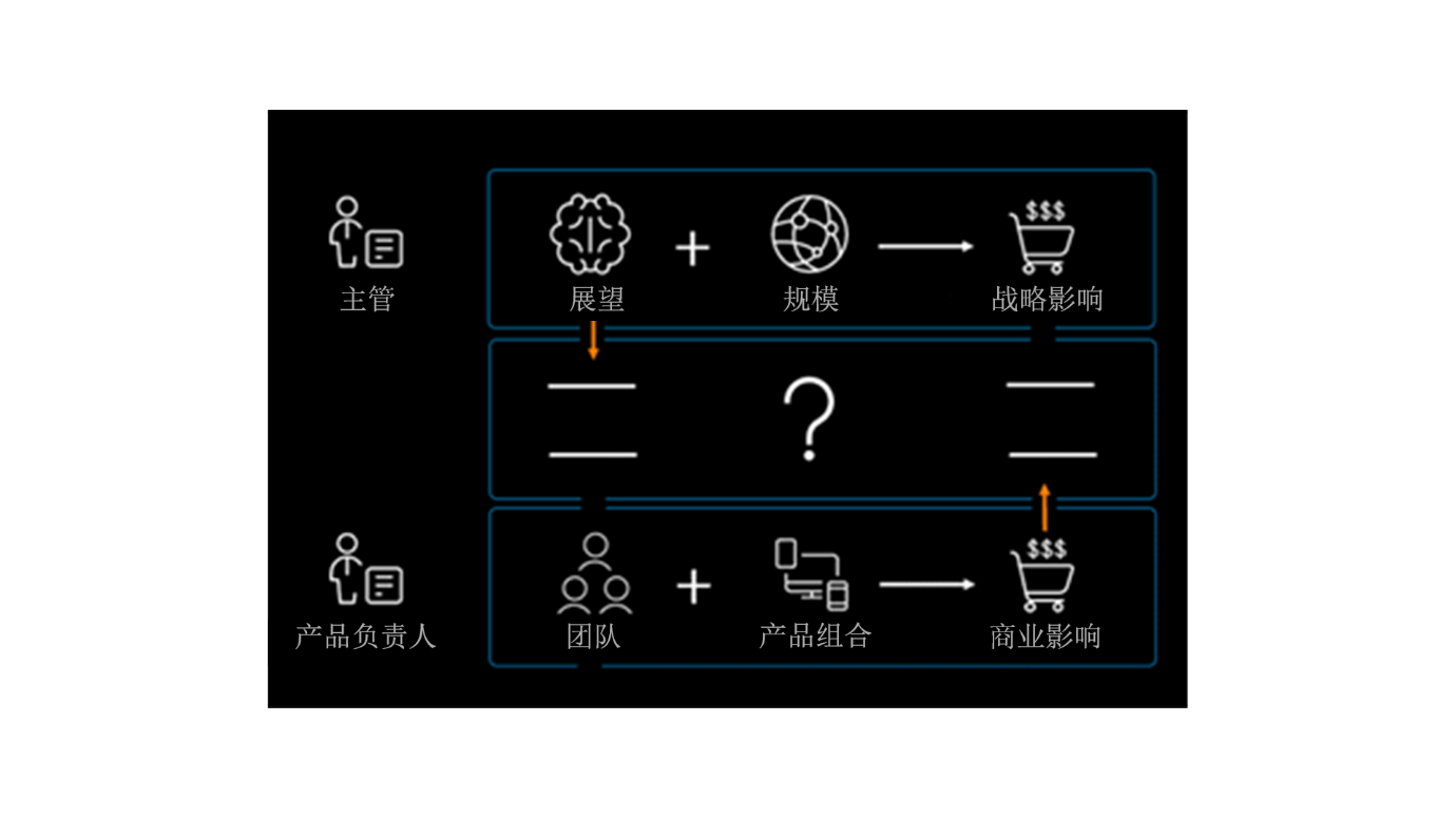 由高管制定愿景,然后传达给部门主管,并且最终由部门主管负责制定战略和团队的执行方式。但每个部门都有自己的资源、技能和需求,所以制定的战略会有所不同,而且战略的执行方式也千差万别。如果战略执行者对愿景产生了不同的理解,那么各个部门的结果和产出就会不同,最终导致以错误的执行方式开展工作或产生出非预期的结果。他们可能采取了错误的执行方式或者生产了错误的东西。