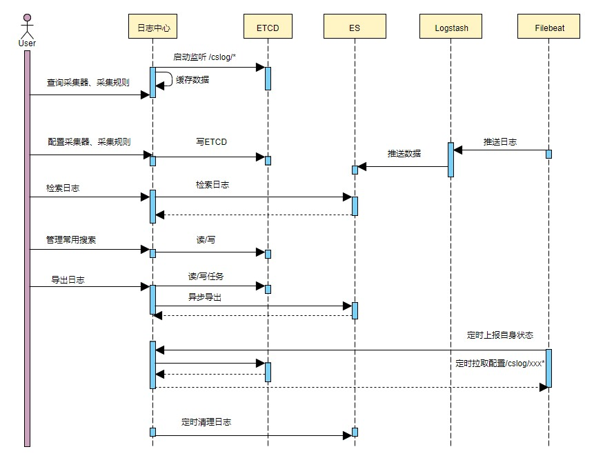 通过流程可以发现,日志中心是集群日志采集方案的核心,所有的采集配置都是通过日志中心创建并维护,filebeat拉取配置的定时任务每隔5秒执行一次,用户在平台功能页面更新指定配置,日志中心服务会更新缓存数据,基于缓存的存储可以更快的响应filebeat拉取配置的请求。