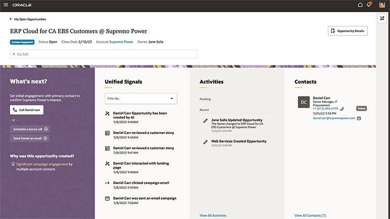 美国德克萨斯州奥斯汀 — 2022 年 7 月 28 日 — 甲骨文公司宣布推出新一代 Oracle Fusion 销售 (Oracle Fusion Sales )。作为一款销售自动化应用软件,Oracle Fusion 销售能够识别优质的销售商机,并指导销售人员更快速地达成交易。Oracle Fusion 销售属于 Oracle Fusion 客户体验云 (Oracle Fusion Cloud Customer Experience, CX) 的一部分,可自动为销售人员提供基于人工智能 (AI) 的报价、提案和推荐步骤,从而帮助他们提高工作效率和成交率,并加强买方的信心。
