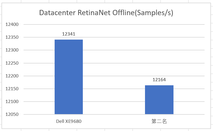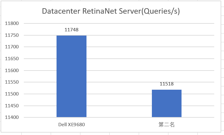 8卡H100配置的PowerEdge XE9680参加了12项测试,所有测试成绩均位居前2,其中在RetinaNet Server(目标检测)、RetinaNet Offine(目标检测)和RNN-T Server(语音识别)三个项目赛道皆拿下第1名的最优成绩。