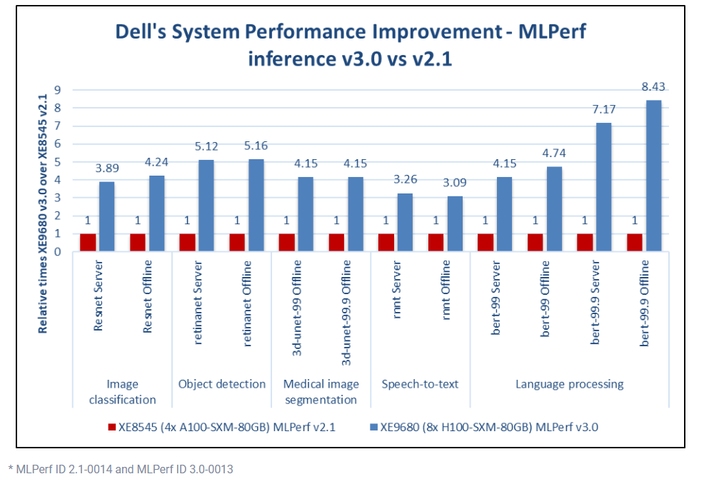 戴尔的MLPerf Inference v3.0与Inference v2.1成绩对比