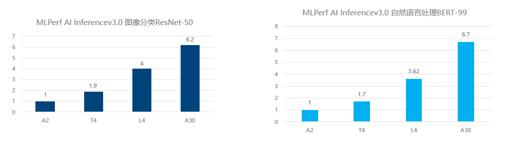 以此次AI Inference v3.0 Edge的测试项目中的图像分类ResNet-50与自然语言处理BERT-99为例,L4的推理计算性能分别达到T4的2.1倍和2.13倍。而同A10相比,L4绝大多数的规格指标与A10非常接近,功耗却不到其一半,同时实现了大量成本节约。L4的发布,将成为未来AI推理计算具备高竞争力的GPU选型。