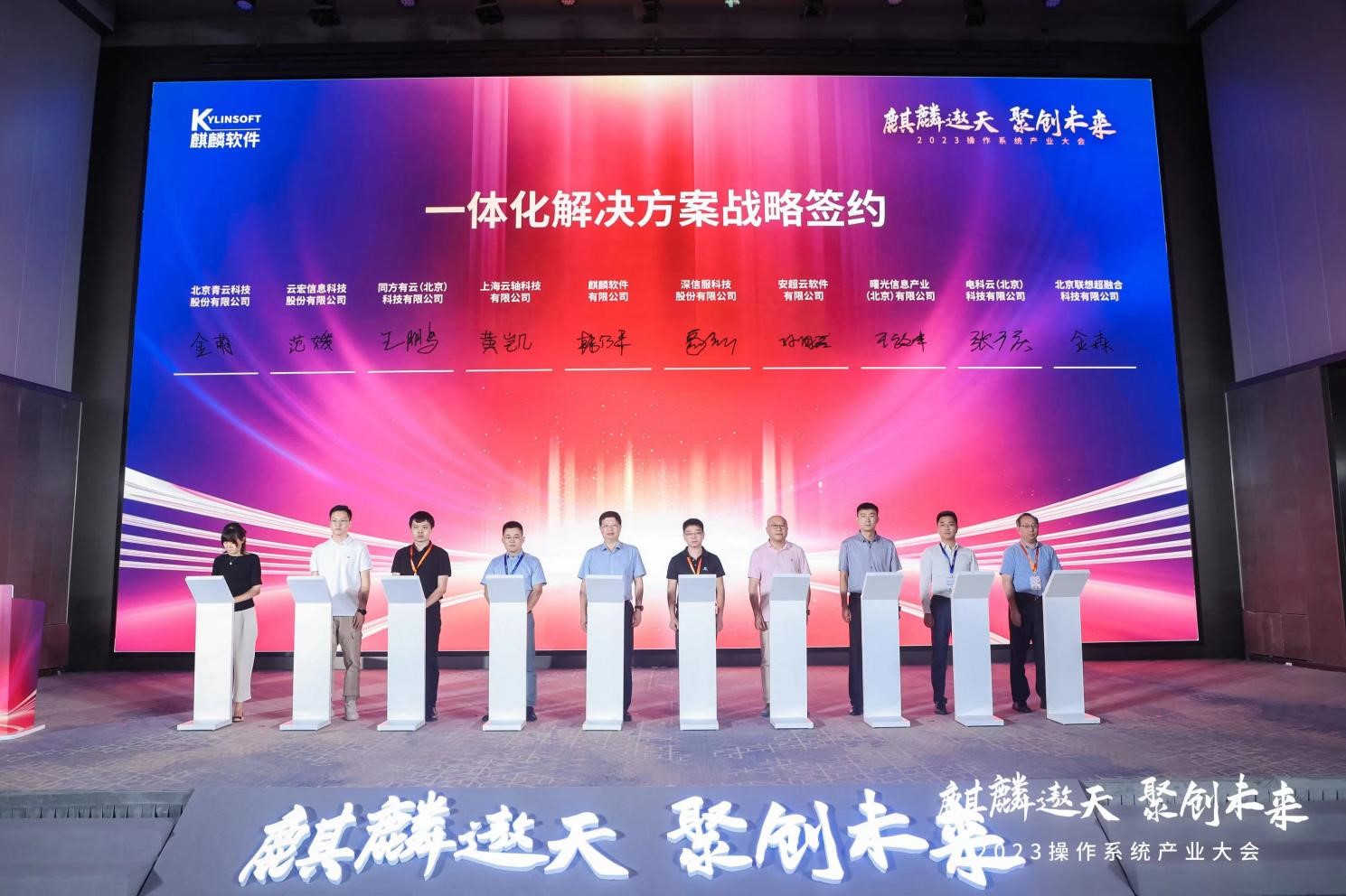 麒麟软件与安超云是中国基础软件行业的重要力量。在本次会议上,除了生态战略签约,双方还达成了一体化解决方案战略签约。该签约是双方在技术和产品上的深度结合,基于各自丰富的行业解决方案经验,解决用户数字化、国产化转型中的难题,为用户提供更安全可靠的一体化解决方案,树立产业融合发展新标杆。