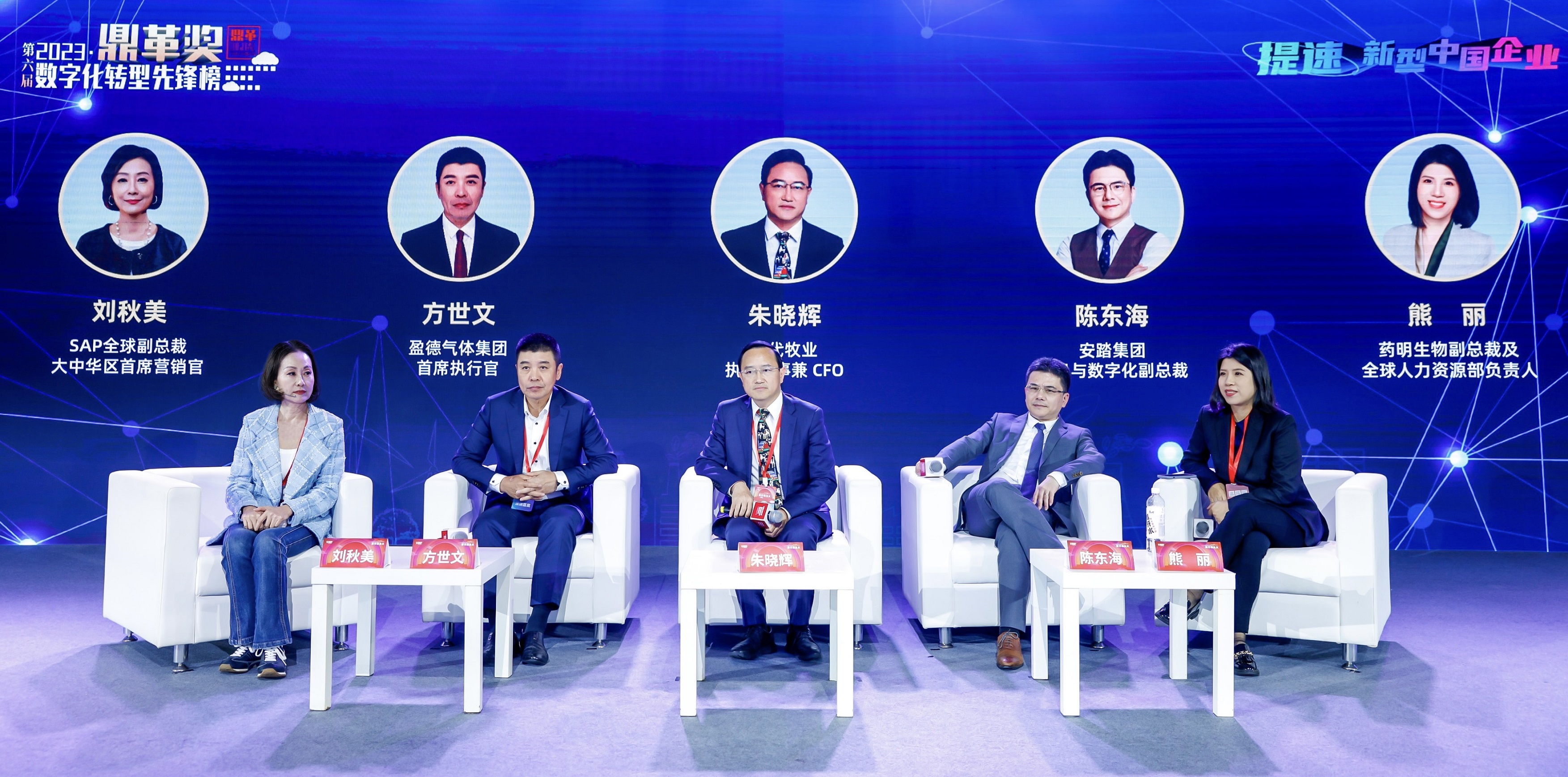 在圆桌论坛环节,SAP全球副总裁、大中华区首席营销官刘秋美与盈德气体、现代牧业、安踏、药明生物四位获奖企业代表,围绕管理上云、AI和出海等热点趋势,深入探讨了“新型中国企业”数字化转型新方向,碰撞出精彩纷呈的智慧火花。